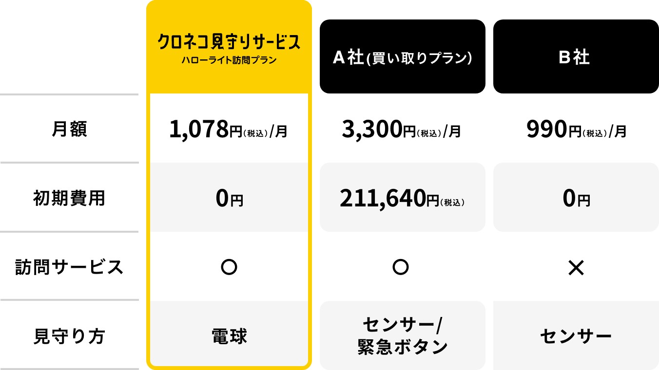 見守りサービスを設置する時にかかる初期費用が心配な方も多いと思います。クロネコ見守りサービスなら初期費用が0円なので、試しやすい!始めやすい!